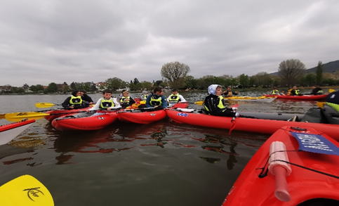 Bei den Abschlussaktivitäten hatten wir ebenfalls großen Spaß: Zuerst machte die Klasse- wieder in zwei Gruppen- eine Kajaktour über den Neckar,